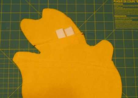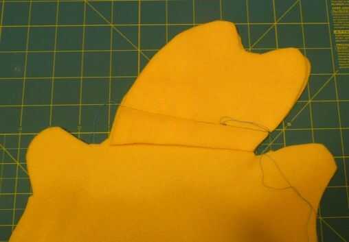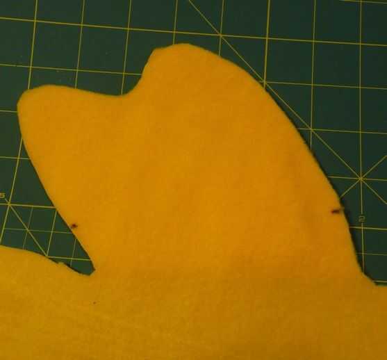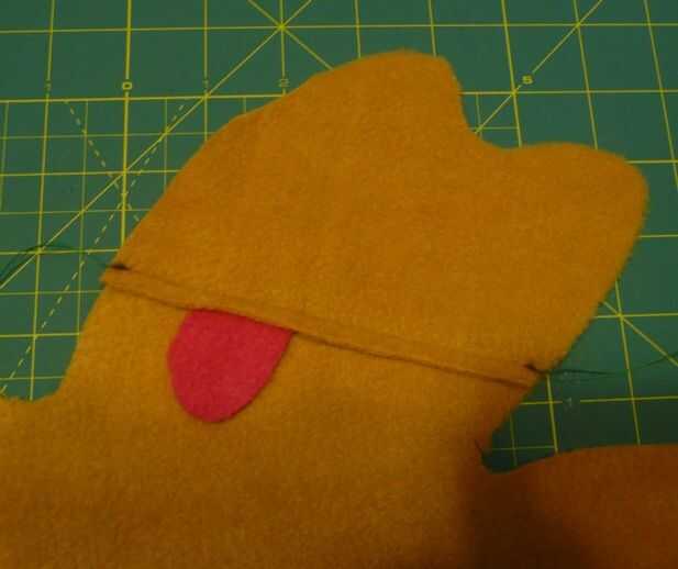 Recortar el labio apagado, teniendo cuidado de no cortar la lengua bonita que sólo intercalado. Deja sobre un 1/4" de labio. El borde expuesto será fray no debido a la forma del vellón. Una de las ventajas al uso de polar o de fieltro. Lo voltee y recortar la cabeza sobrante de la pieza de cuerpo por encima de la línea de la boca.
