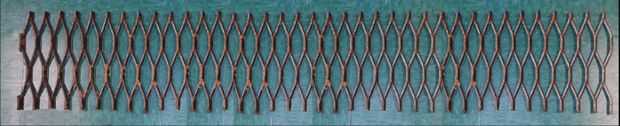 Generalmente viene en 4' por 8' hojas y es muy difícil de manejar. Es torpe, tiene bordes muy afilados, y una hoja completa pesa entre 36 y 58 libras, dependiendo del tamaño de las aberturas. Es algo así como tratando de manejar una hoja completa de madera con afiladas hojas de sierra para los bordes. Mango sólo con guantes para trabajo pesados... y todavía hay que tener cuidado!