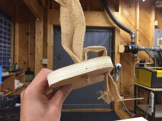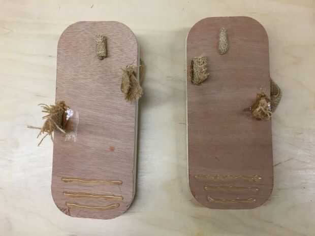 He utilizado un trozo de arpillera como la correa, pero usted puede hacer esto fuera picadura de plástico o cualquier cosa que se sienta cómodo en sus pies. Empecé desde el agujero central bajando la arpillera por debajo de los zapatos, les aplican pegamento caliente para fijar en posición. Me aseguré de que ya estoy tirando para arriba, algunos del pegamento caliente lleva a la parte superior del agujero para el asimiento mejor. Luego se mide la longitud de la correa para asegurarse de que mis pies se adapta cómodamente.