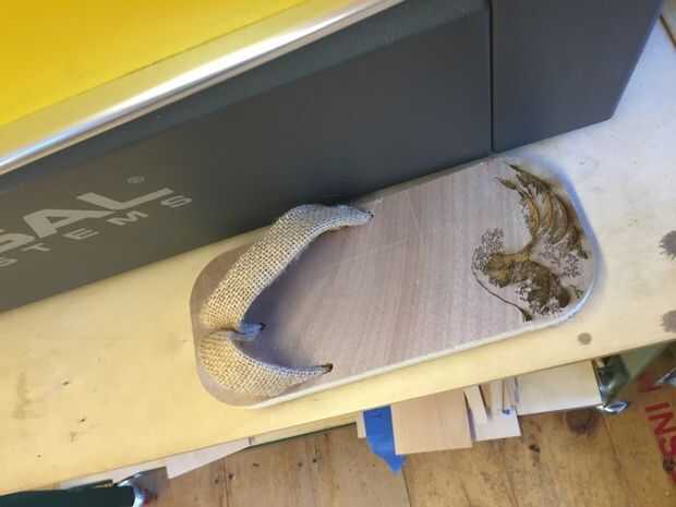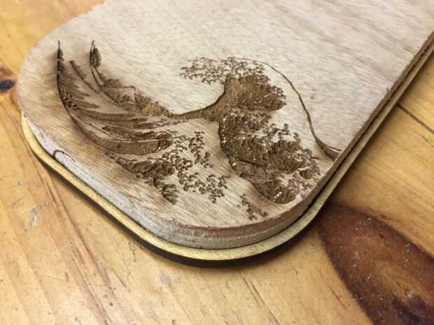 He utilizado Katsushika Hokusai como patrón para mis zapatos, hice el dibujo en vector para corte por láser. El grabado ha añadido mayor agarre pero puede sentir un poco incómodo. Supongo que podremos renunciar claro para hacer la superficie plana para no lo grabado muy profundo con el láser.