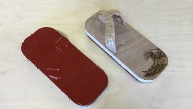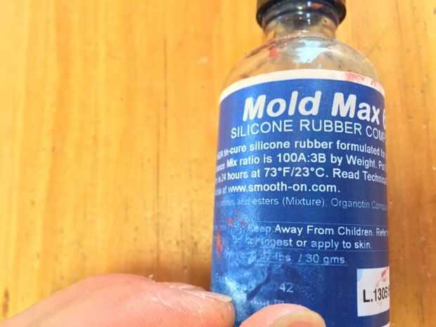 La sandalia de madera hace mucho ruido en el estudio, por lo que decidí agregar la goma a los pies. Usé moldes MAX 60 parte A y parte B para hacer la goma. Toman unas 24 horas para curar.