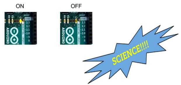 - Mira el LED a bordo junto a blink pin 13 encendido y apagado.