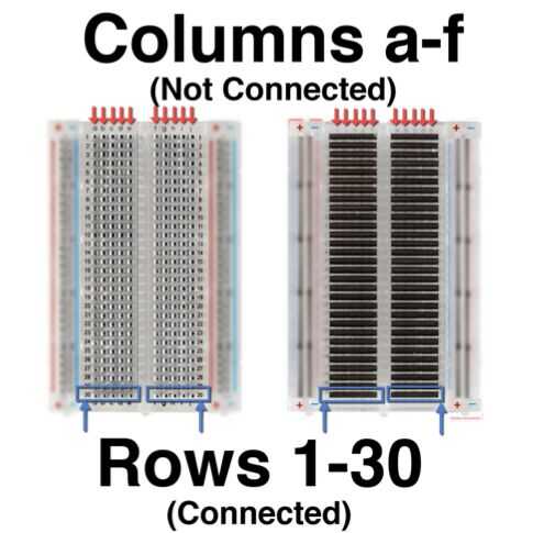 Aviso de filas y columnas también existen columnas y filas en el centro de la placa. Las filas se dividen por la mitad y están conectadas entre sí, pero divididas por el centro. Las columnas no están conectadas a nada.