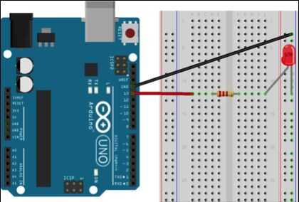- Si no lo es ya, conectar el Arduino al ordenador con el cable USB suministrado. Si todo ha ido correctamente, usted tendrá un circuito donde el exterior parpadea encendido y apagado.