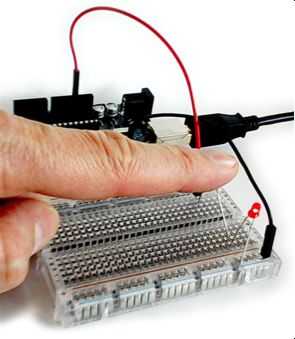 - Tome un extremo de la fotorresistencia y enchúfelo en la columna E, fila 12 en el lado izquierdo de la protoboard.