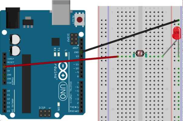 Cubrir el fotoresistor con el dedo, ¿qué pasa con el LED? Debería desaparecer cuando se cubra la fotorresistencia y lo aclara de una vez ha descubierto. Si esto no es la reacción que estás experimentando, comprobaremos el cableado.