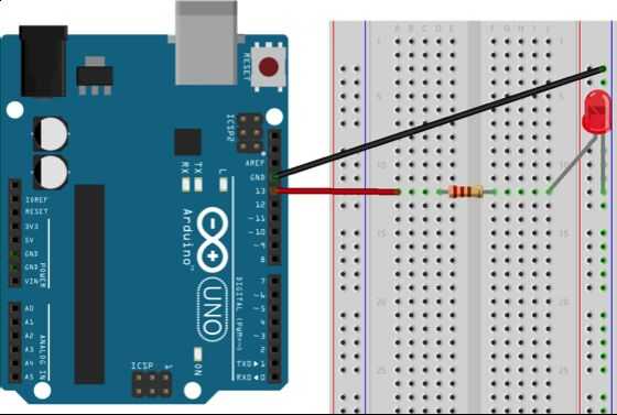 - Pasar un extremo del cable puente rojo de los 3, 3V la clavija y enchufe de 13 PIN en el lado derecho de la Arduino.