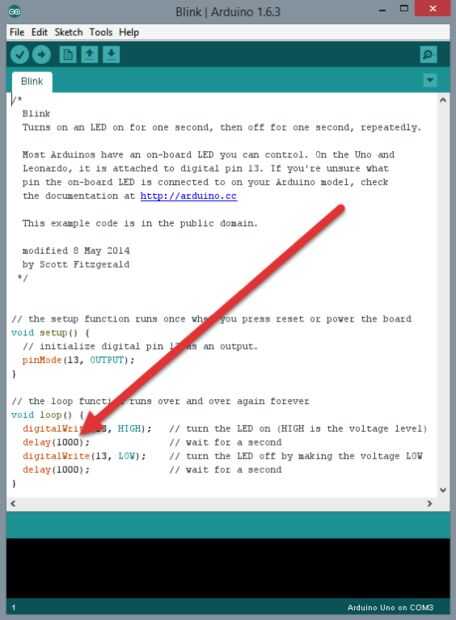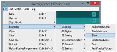 - Haga clic en archivo → ejemplos → 01 conceptos básicos → Blink.