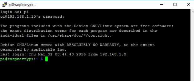 - Introduzca la dirección IP en masilla y haga clic en abrir. Se abre la nueva ventana de símbolo del sistema como se muestra en la imagen 7. Tenemos que iniciar sesión con el nombre de host y la contraseña.