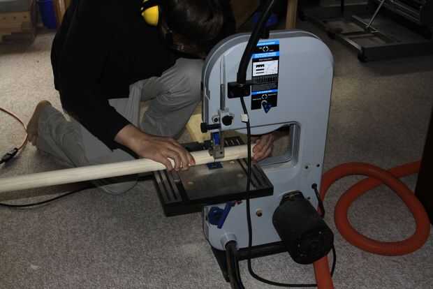 Utilizaré una pieza de diámetro de 1,5 pulgadas de madera esviados para crear esta pieza. Porque el stock de 1,5 pulgadas es demasiado ancho para mi tirada de 3 quijadas que tuve que cortar mi stock bastante un poco más de mi pieza terminada y luego tallar uno de los extremos hacia abajo por lo que cabe muy bien en el portabrocas. Además el material extra me permitirá utilizar un contrapunto para sostener la parte que se corta.