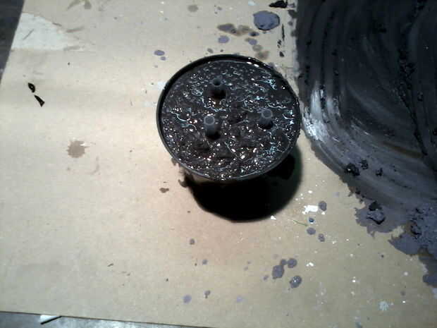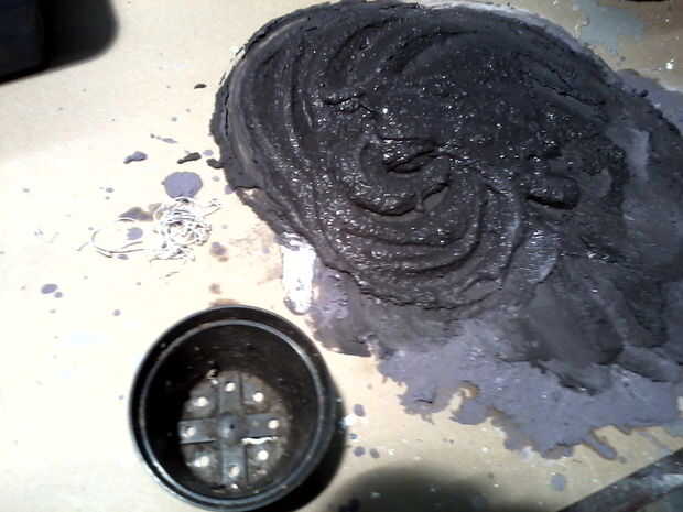 Tome el resto de cemento y mezclar en algún color oscuro como negro o marrón y cargar el bote con cemento luego inserte pajas en la olla, estos sostenga las rosas en su lugar