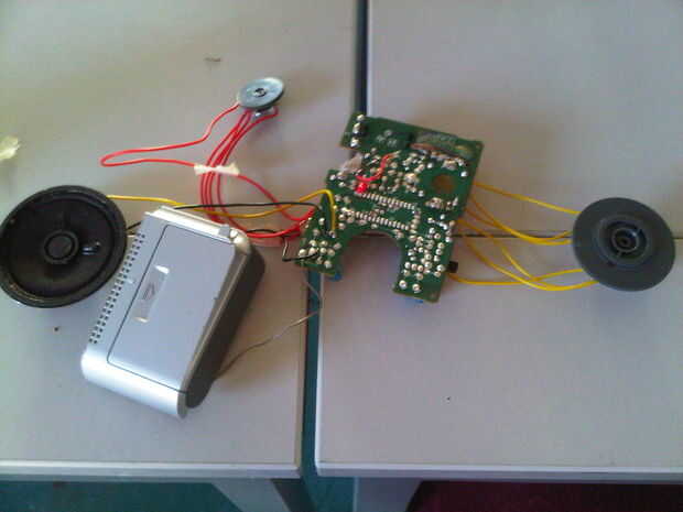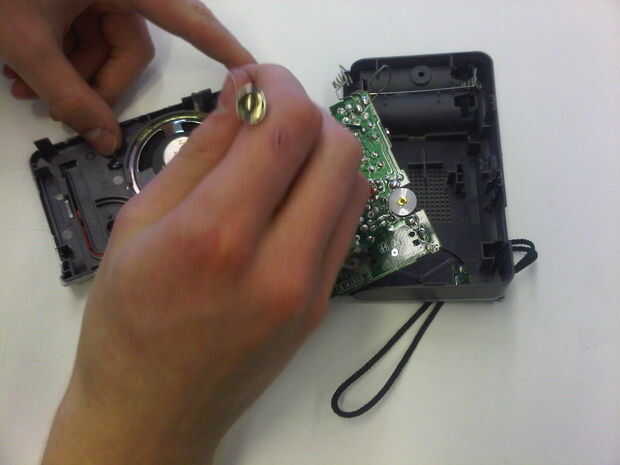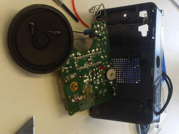 Usted necesitará desoldar algunos componentes para que puedan caber en la UnderTheSkin Radio. El sintonizador, volumen y unidad de alimentación son componentes que se deben de soldar y extendido un poco más. En las imágenes verás cuánto extendiéndolas.