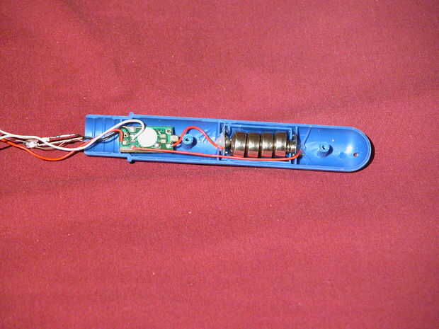 Dentro encontrarás un pequeño circuito intermitente y 4 pilas de botón LR44.