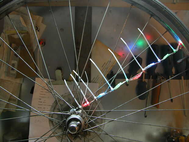 Bicicleta habló POV (persistencia de la visión) es un proyecto fácil que rueda de bicicleta simple de vuelta en un parpadeo modificado para requisitos particulares de la rueda. Este proyecto se realiza sin ninguna codificación sólo con componentes si
