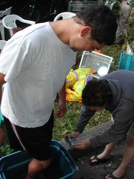Esto se hizo en el lado este de la Providencia donde muchos patios están llenos de vides de uva. Definitivamente la gente hace su propio vino de allí, y algunas casas aún tienen prensas en el sótano! Tuvimos suerte de tener las uvas, pero no la prensa, así que tuvimos que utilizar nuestros pies.
