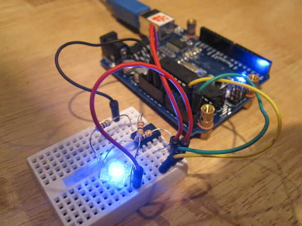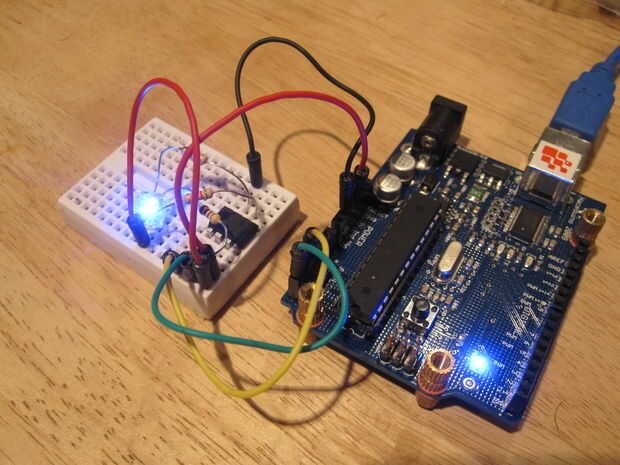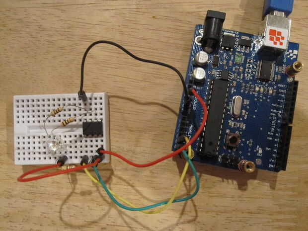 Ahora que todo es cableado, conecte arduino a un USB y permiten el flujo de energía! Si todo va bien, veremos... er... nada. tal vez un poco flash del LED como usted poder, pero por lo demás nada en absoluto. No pánico, debemos estar todos los derechos.
