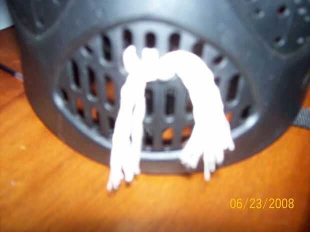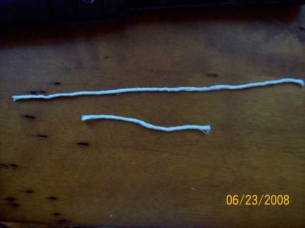 Cortar 30 piezas de 5" y 10" de la cadena. Tomar la cuerda y atarla con un nudo simple. Tome las puntas de la cadena y desentrañarlo. En aproximadamente una hora, debe ver algo como la última foto.