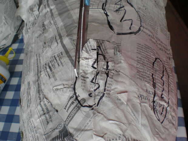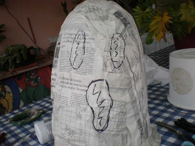 Dibujar una cara sobre el fantasma con el marcador (puede probar con un lápiz y luego con el marcador). Es un poco difícil de pasar por encima de él debido a su textura desigual, pero es fácil de cortar.