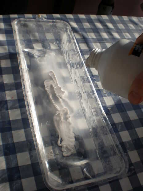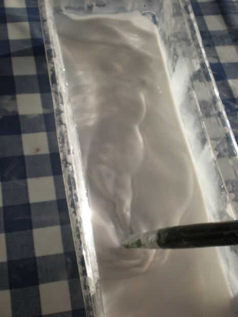 La proporción de la mezcla de su 1/3 de agua y 2/3 del pegamento de la escuela. Poner todo junto en un recipiente y mezcla con un cepillo.