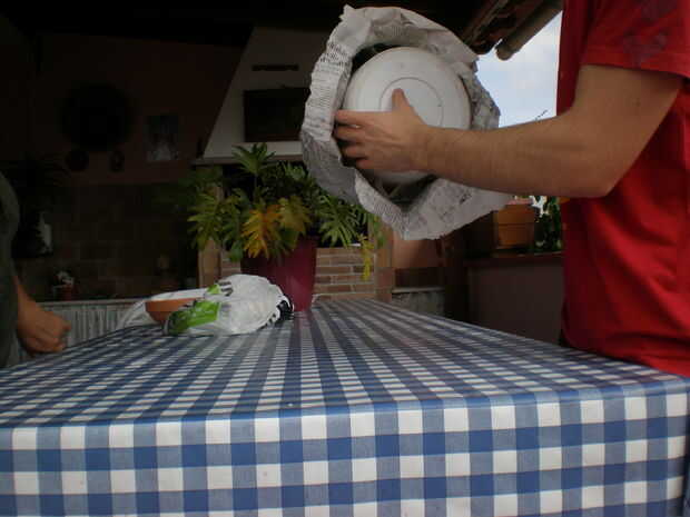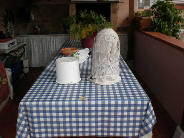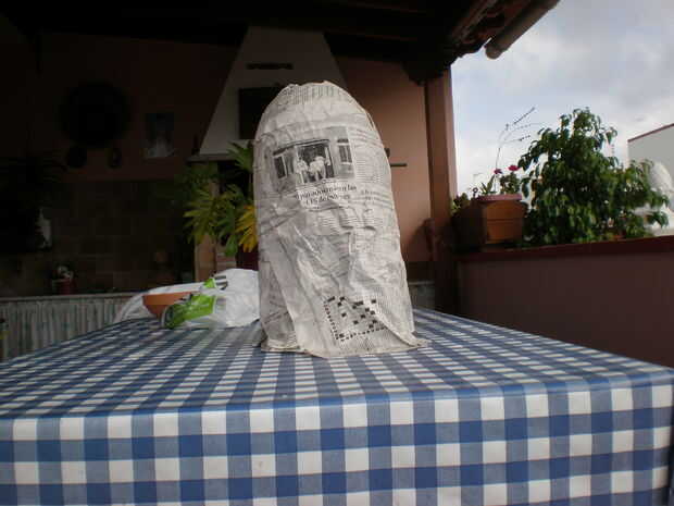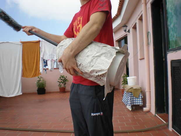 Desinflar el globo de condón con las tijeras. Luego, extraiga el cubo con un palo, golpeando la base del cubo. Para más detalles, vaya a los siguientes cuadros.