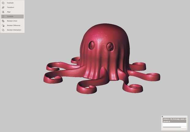 Ahora es el momento para combinar los dos modelos. Seleccione ambos modelos desde el menú Seleccionar objeto en la parte inferior derecha de tu pantalla y luego seleccione la herramienta de combinar en el menú que aparece.