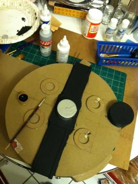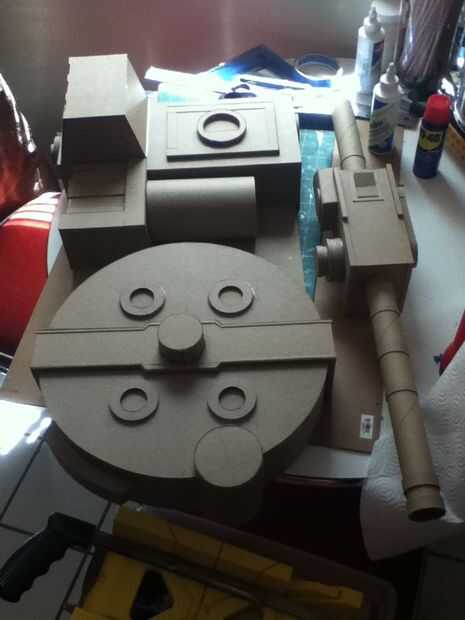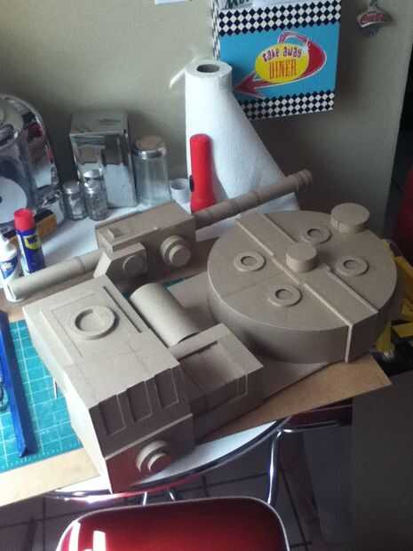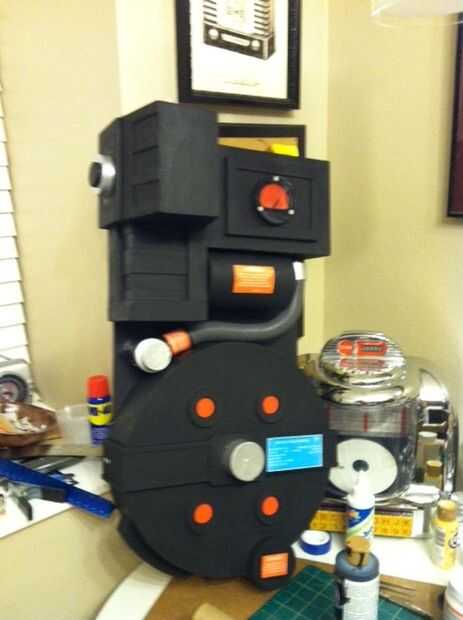 Comenzó como un tablero de espuma con construido en la parte superior de tablero de viruta. Modge Podge solía sellar y cebarla y luego utiliza una pintura negra de acrílico plana y agregó un poco técnica de envejecimiento artificial para darle un aspecto realista. Usé varios trozos de madera bajo para el arnés de correa y correa, así como por el gancho que se fija a la pistola al paquete de protones. Todos juntos entre el corte y pegado, pintura y ajuste aquí y allá sólo toman un mes y medio; trabajar algunas noches y fines de semana.