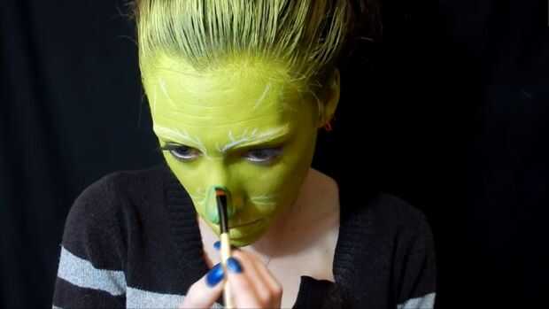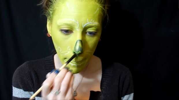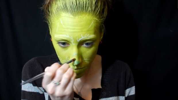 Con sombra verde oscura que empezaron a poner dentro de la nariz, entonces agarré de sombra de ojos negra para profundizar hasta, también de drogas de ese color alrededor de la nariz, y he utilizado el eyeliner para resaltar.