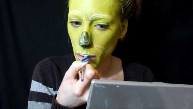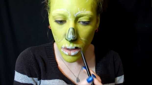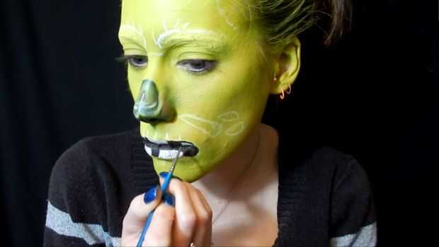 Llené en los dientes con pintura de cuerpo blanco, luego rellenado el resto con pintura de cuerpo negro, también tomé un cepillo para detalles con negro delinear.