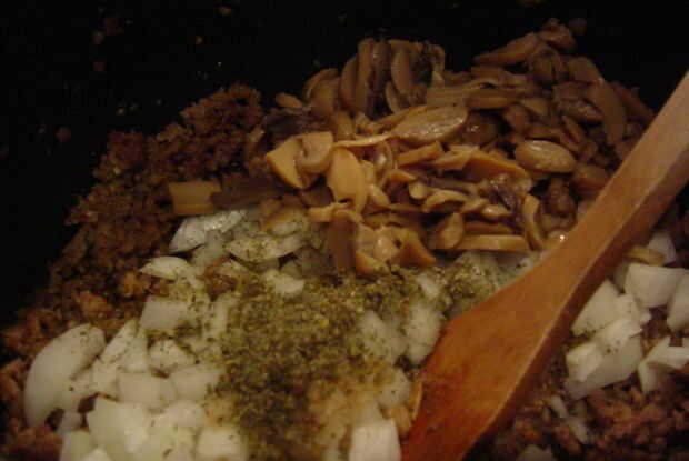 Una vez que la salchicha está nuevamente en la cacerola agregar: