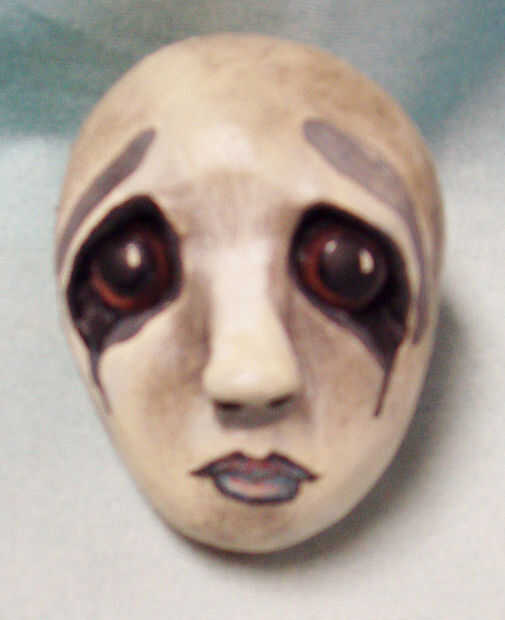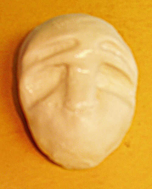 Cuando la cabeza está seco, arena ligeramente si hay cualquier aspereza a la pieza. Aplicar 2 manos de gesso, permitiendo secar entre y después de cada capa de la arena si es necesario. Pintar los ojos y negro. Puede quitar los ojos o poner cinta adhesiva sobre ellos para evitar cualquier tipo de pintura sobre ellos. Mezclar la pintura negra con algo de blanco para hacer gris y la zona de puente de la nariz de la cortina. Pintar la cejas bray y dentro del negro de las fosas nasales. Puede usar el lápiz negro para las fosas nasales.