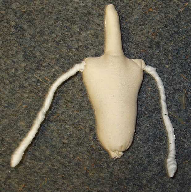 Copiar en papel y recorte el patrón debajo de papel de congelador para hacer una plantilla para el cuerpo y plancha sobre la tela doble cuerpo. Tenga en cuenta las dimensiones. Coser alrededor de la plantilla, dejar abierto en la parte inferior para rellenar.