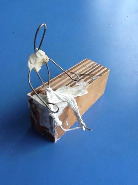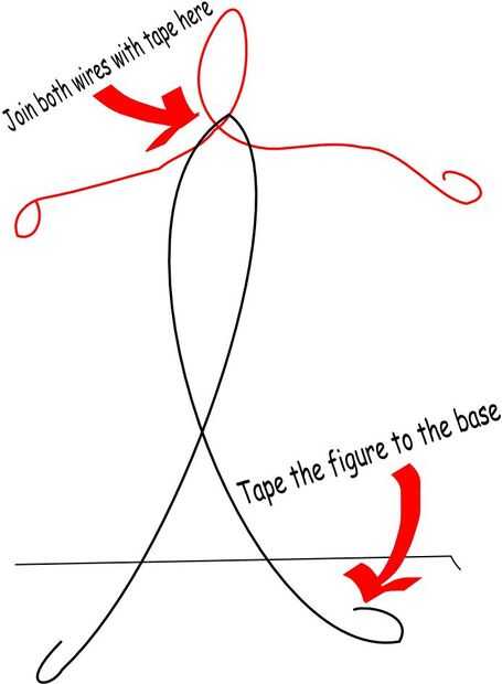 Encontrar la manera más fácil de comenzar es con dos pedazos de alambre de unos 20 cm. Uno para la cabeza, los hombros los brazos y las manos y uno para el cuerpo y las piernas. Para pegarlas con cinta.