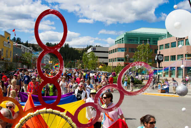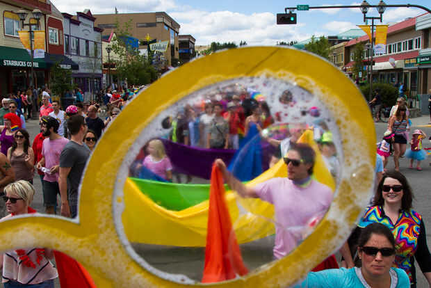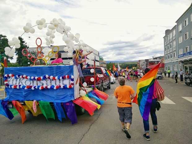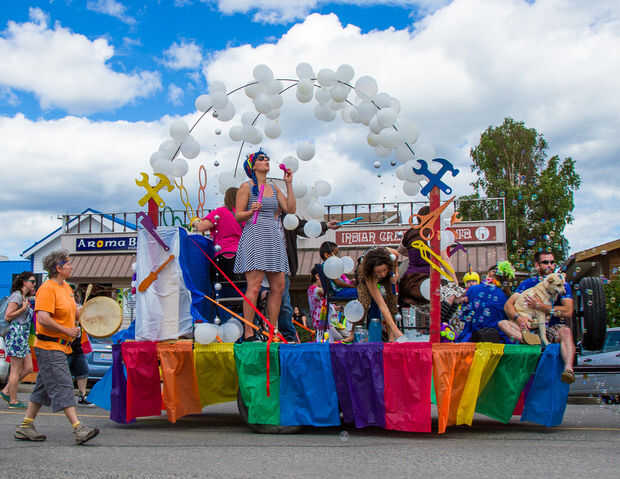 Nuestro makerspace quería construir algo divertido para nuestro carro. Inspirado en un vídeo uno de nuestro miembros Sierra en línea, hemos hecho una máquina de burbuja gigante sobre todo de reutilizados, materiales re-purposed. La carroza fue un gran éxito y obtuvo el primer lugar en el desfile del orgullo de Yukon.
