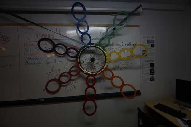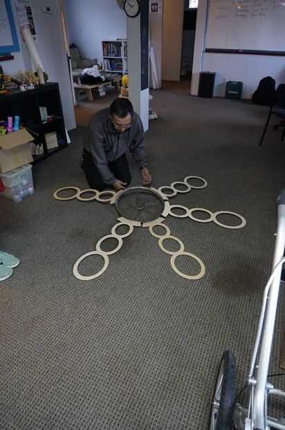 Los tubos fueron atados a la rueda de la bici con ataduras de cremallera.