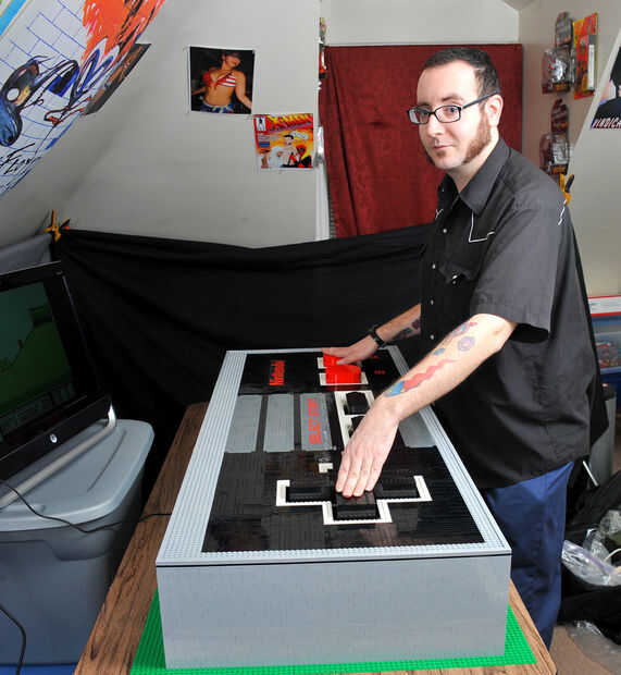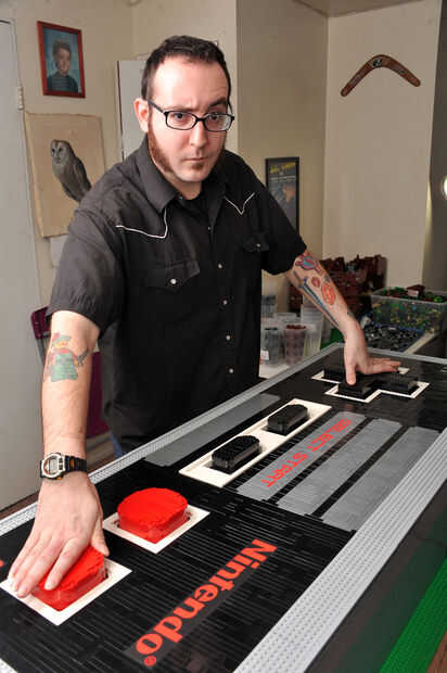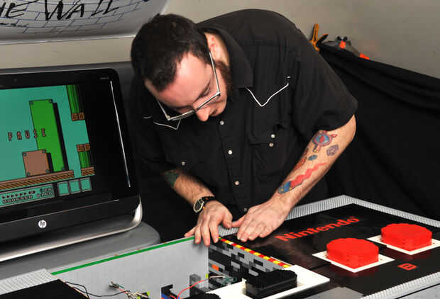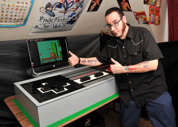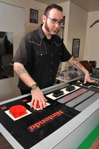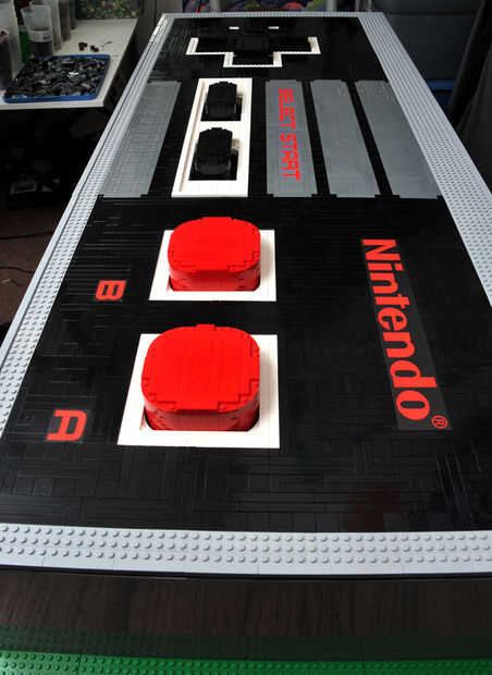 Antecedentes: este proyecto fue el subproducto de mi abortados evento batmóvil de LEGO. En el verano de 2012, Ripley en Times Square puso en contacto conmigo haciendo una promoción para poner en marcha el estreno de The Dark Knight Rises - con miles de ladrillos LEGO para completar una réplica del Batimóvil, de principio a fin sin interrupciones - como especie de un "speed run". En el día de mi generación programada, el trágico tiroteo ocurrió, desafortunadamente, y build-off fue desechado a la luz del incidente. Luchando para pensar en una creación de promo de sustituto, hemos intentado llegar a un montón de ideas de escultura LEGO de último minuto que me crea, con una fecha que coincidió con el proyecto (por ejemplo, construir una torre de Eiffel en día de la Bastilla, gigante jack-o-linterna de Halloween, etc.). Hice algunos detective y supo que el 25 aniversario del lanzamiento del primer Legend of Zelda para NES sería una semana desde el día de la original Batmobile build-off [que fue el 20 de julio; Zelda se salio el 27 de julio de 1987] y así reciclar los ladrillos negros y grises para hacer un controlador NES! La Agencia de relaciones públicas con Ripley rechazó la idea, sin embargo la perspectiva de mi edificio un controlador de NES LEGO gigante parecía tan alegre buena idea que siguió adelante y comenzó a adquirir piezas para él en masa - no para de Ripley, pero por mi propia causa!