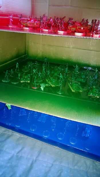 • Con pintura de spray, rociar los ejércitos sus colores deseados (elegí: rojo, azul, verde, blanco y gris)