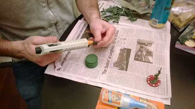 • Utilizando una pistola de pegamento, pegamento todos los soldados para fichas de poker