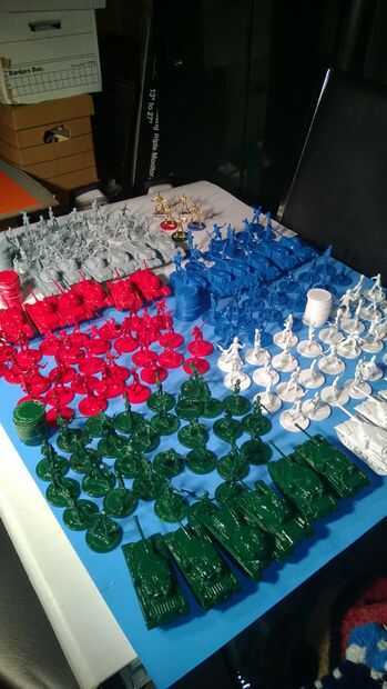 • Tiene una fichas de poker ~ 15 además por ejército (estos más tarde se utilizará para representar las tropas adicionales en el tablero por apilamiento en soldados)