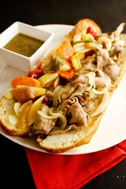 El pan absorberá el aceite de las verduras en escabeche, con la carne de vacuno asado tierno y el caldo de res, nunca puede ir mal con eso.