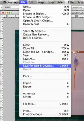 Ahora usted ha hecho la animación y necesita para guardar como un archivo gif. Ir a archivo--> Guardar para web y dispositivos.