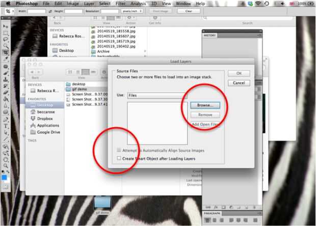 Asegúrese de comprobar "intentar alinear automáticamente las imágenes de origen". Esto alineará a todas sus imágenes al mejor ajustaban y ahorrar mucho tiempo (yo solía alinear toda la imagen por el ojo y tardó AAAAAGES!). Cuando has marcó la casilla, golpear, e imágenes se abrirán como varias capas en una imagen.