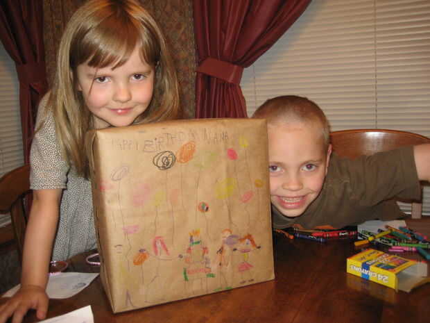 ahorrar dinero, entretener a los niños y reciclar un elemento común con una bolsa de papel marrón para crear papel de regalo único.