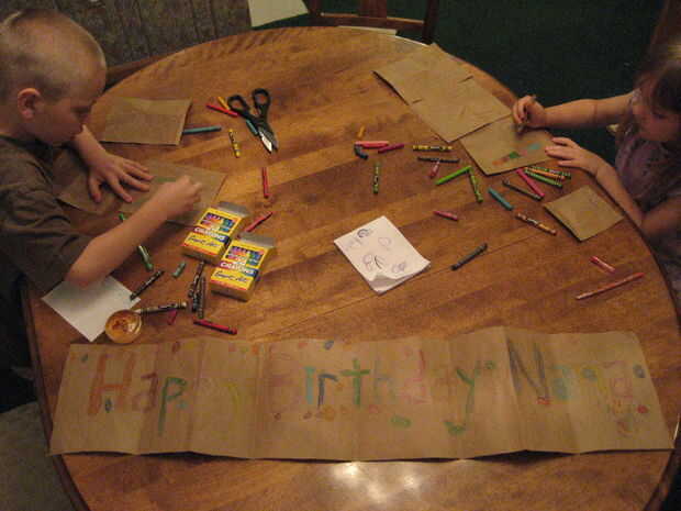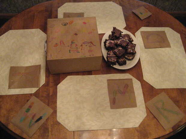 Me repite el paso 2 y luego cortar el papel a lo largo para hacer un banner. Cortar pequeños cuadrados de la segunda mitad para posavasos. Ser creativo y de repente tienes una fiesta temática de papel de brown!