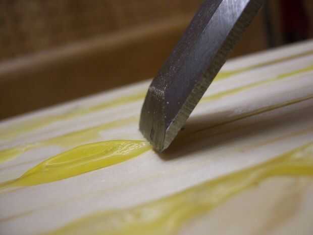 Una vez que el pegamento esté seco, raspar apagado como mucho exceso de cola como sea posible; el pegamento es más duro que la madera y opacarán sus herramientas de torno más rápido.