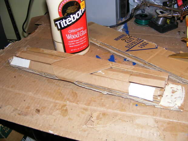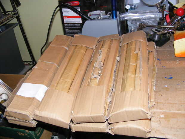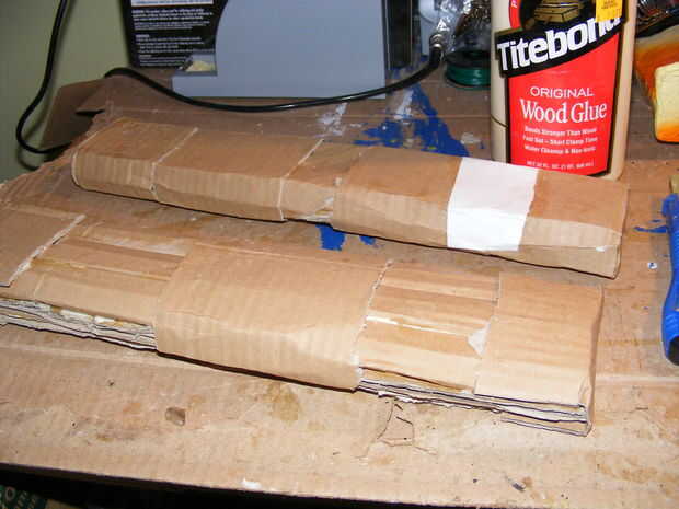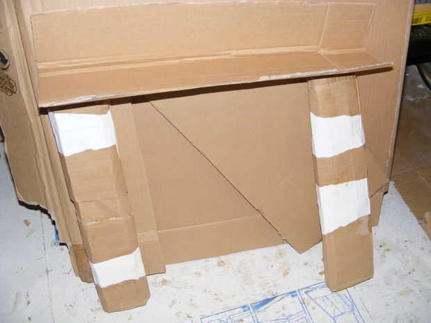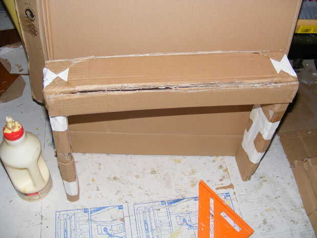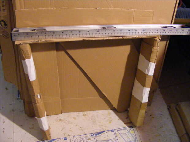 De una sola pieza de cartón o pedazos, hacen una forma de tipo de canal de 18 pulgadas de ancho para cerrar los extremos de las patas verticales.