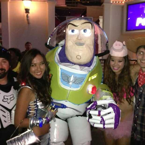 este traje tomó muchas horas para hacer pero con determinación es bastante factible. Materiales se necesitan incluyen: papel maché, espuma de EVA (home depot), tela de piel artificial blanco y vinilo verde (ambos en tela JoAnns), zapatos de plataforma, un porector de pecho como el motocross o el lacrosse y un montón de conducto de cinta (morado, blanco y naranja)