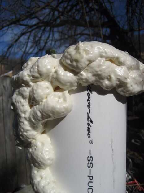 Utilice el spray de espuma de expansión para crear la apariencia de fusión por el lado de la vela de cera. Comience ejecutando a lo largo del borde superior antes de girar hacia abajo. Ejecute varias capas en algunos puntos. Ser al azar. No se olvide la espuma ampliará y suavizar y cambiar un poco el aspecto. Espere a que la espuma curar. Si no te gusta el look cuando cura, agregar más o quitar algunos. O ambos. Mientras esperas para que la espuma curar, trabajar sobre las llamas.