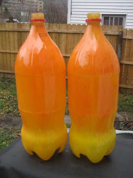 Ahora pinte el interior de las botellas que se asemejan a las llamas.