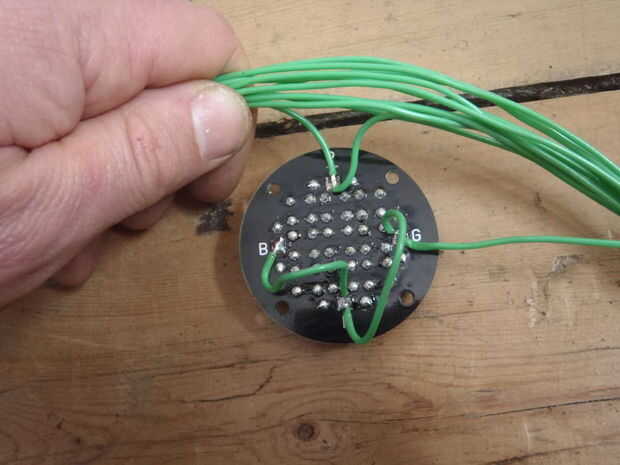 Una vez que han construido los tableros LED, utilice un espacio PCB como plantilla y perfore agujeros de 3mm para el orificio de la placa.