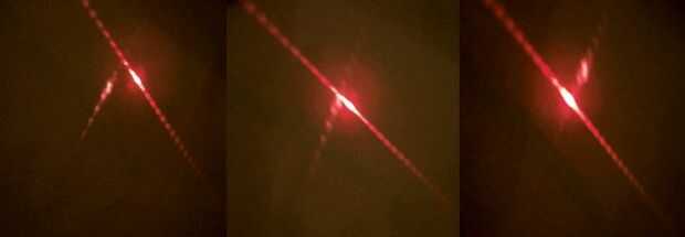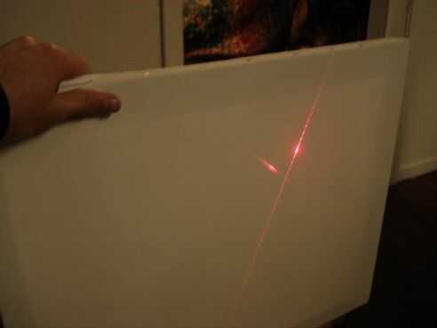 Más bien que proceder con el resto del equipo de construcción, en este momento necesita medir la longitud focal de la lente. Esta es la distancia entre la lente y el punto de luz va a producir. Esta distancia sólo será correcta cuando golpea la lente los rayos de luz son paralelos entre sí y perpendicular a la lente. En otras palabras, la luz tiene ya sea del sol o dos haces láser paralelos y golpear la lente muerto el. A menos que usted vive en el Ecuador, con el sol hacia arriba, medir la distancia focal es realmente muy difícil. Después de un montón de frustración decidí utilizar láseres.